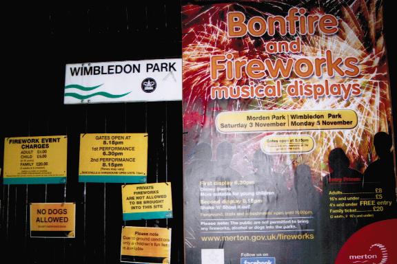 The Merton Council adverts at Wimbledon for Bonfire Night